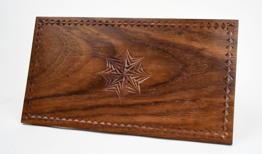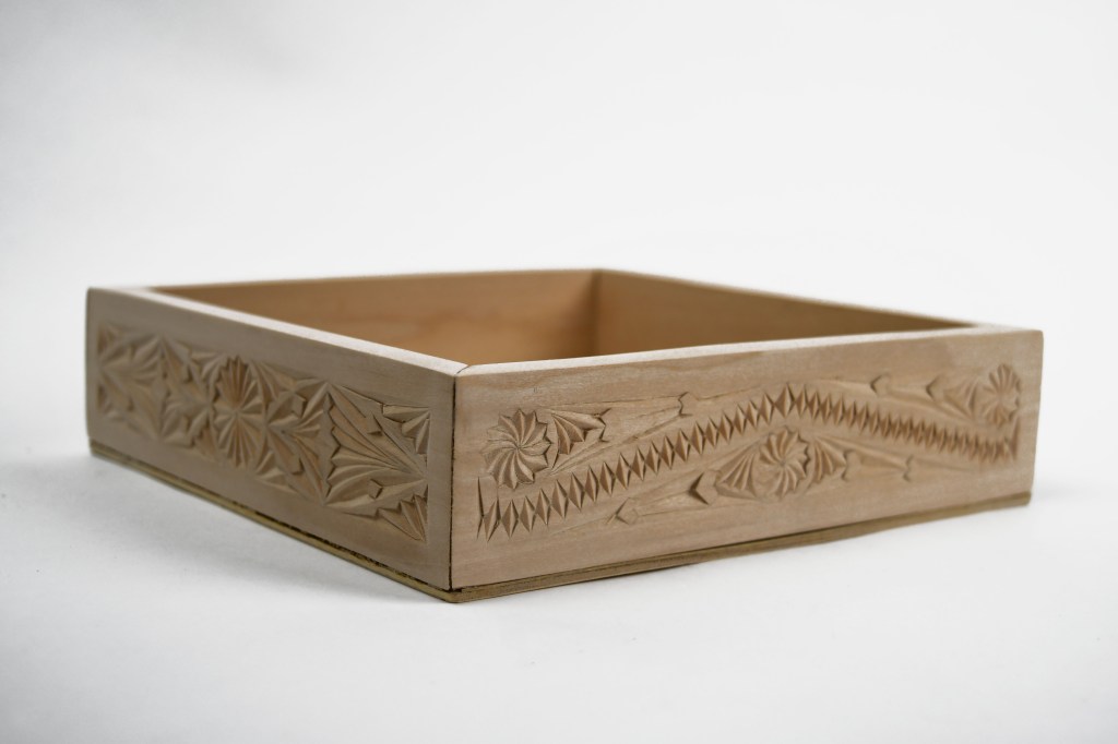 Onderzetter van Padoek houtOnderzetters met rozettenOnderdeel voor een boekenhouderKistje met bloemmotief