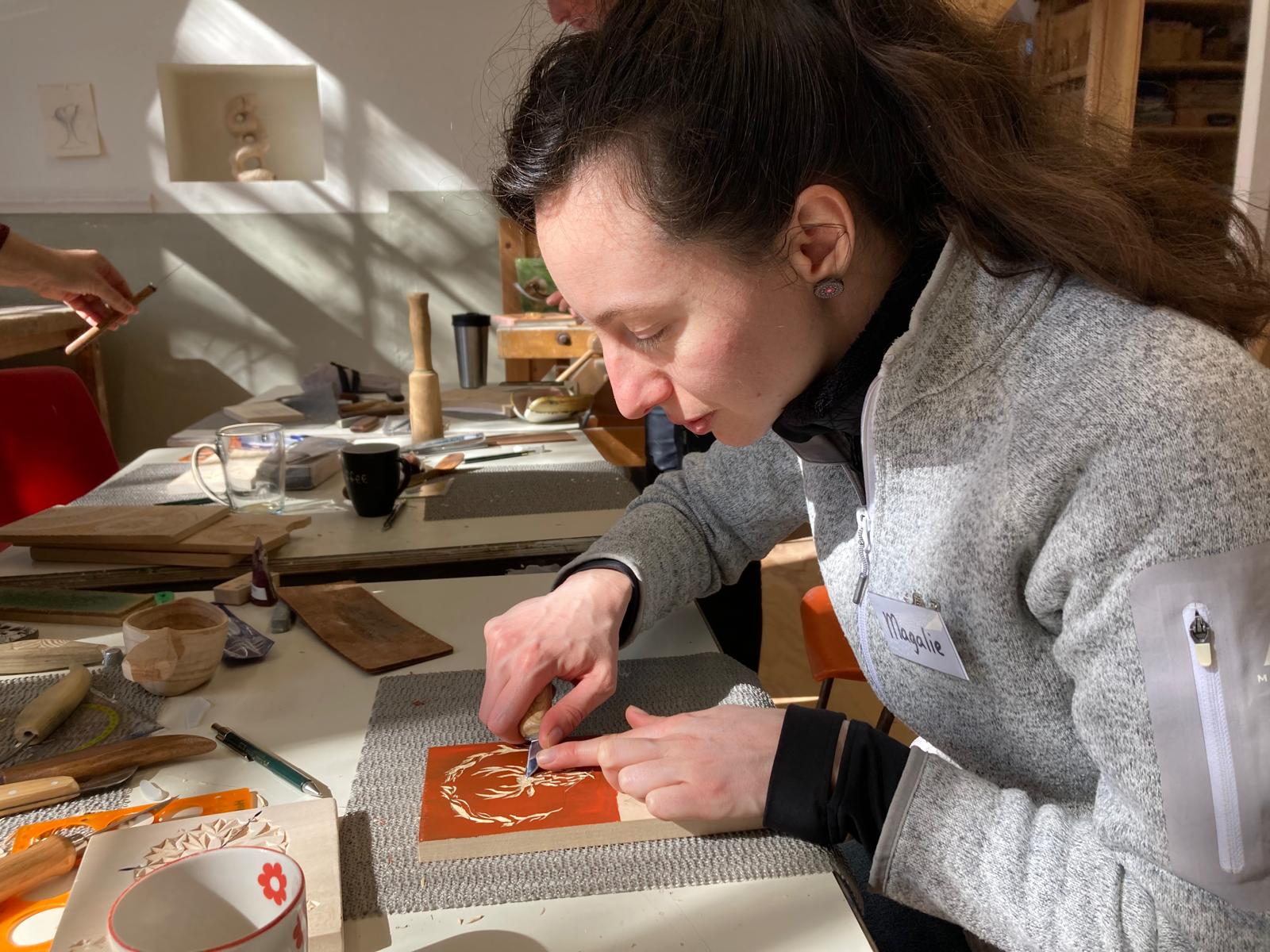 We beginnen met een kennismaking en korte demo, en dan gaan we snel lekker zelf aan de slag. Je krijgt een voorgedrukt oefenplankje waarop alle technieken stapsgewijs langskomen. Tijdens pauzes geven we onze handen rust en vertel ik over geschiedenis van dit ambacht.